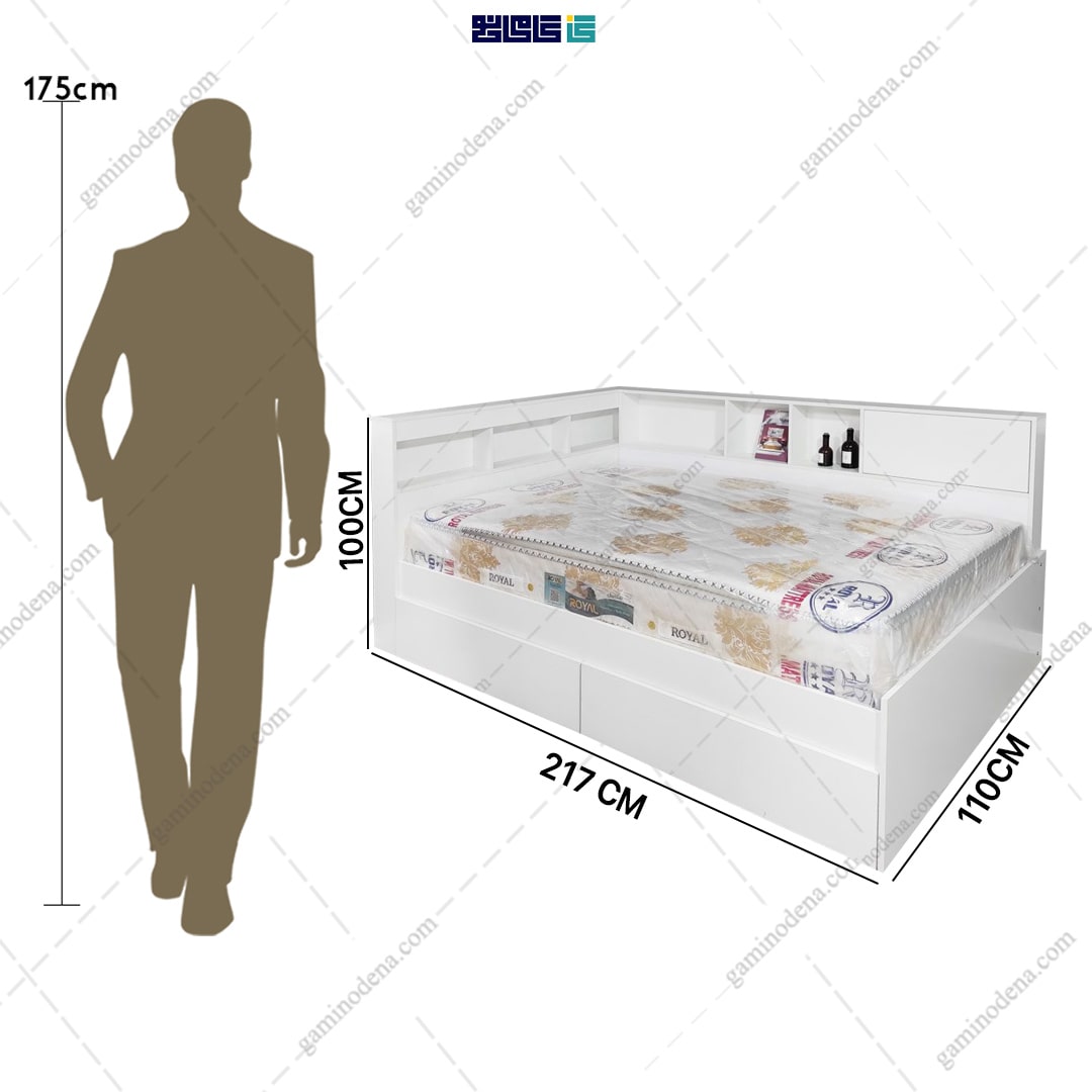 - ابعاد تخت : عرض 110 * طول 217 * ارتفاع 100 سانتی متر