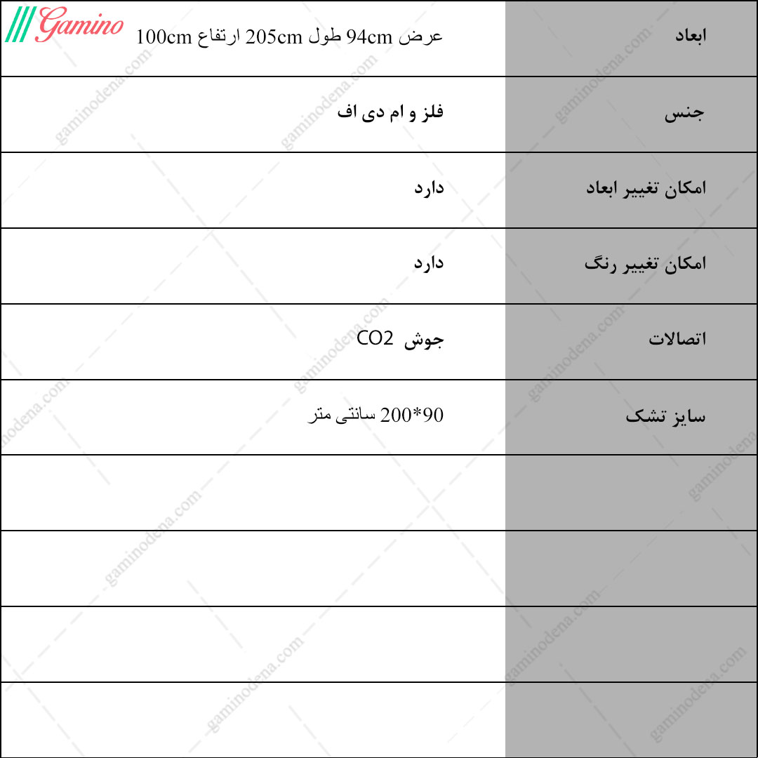 - ابعاد : عرض 94 و طول 205 و ارتفاع 100 سانتی متر