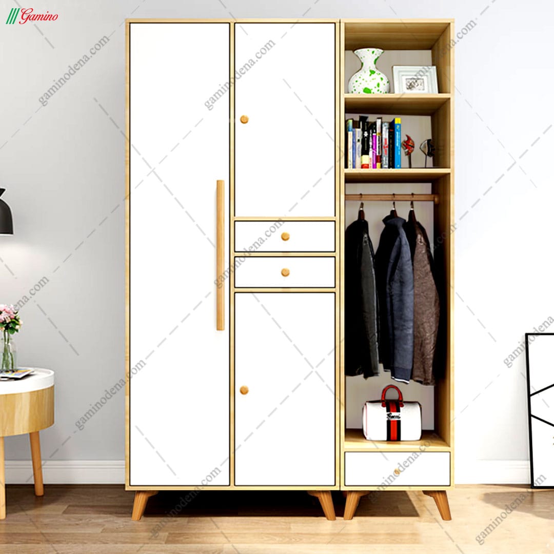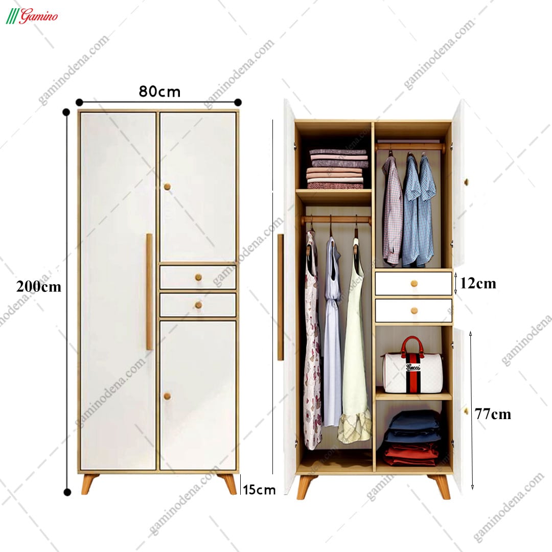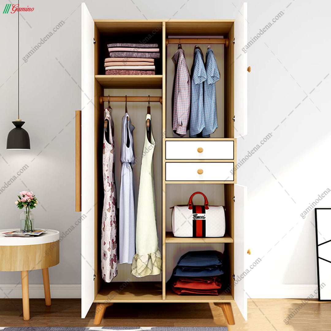 کمد ها علاوه بر نمای زیبایی که به وسیله طراحی زیبایشان به اتاق اضافه می کنند، برای قرار دادن وسایل و لباس ها نیاز استفاده می شوند و از جهت به وجودشان نیاز مبرم پیدا می شود. کمد لباس آسا به صورت سه درب طراحی شده است و فضای کافی برای آویزان نمودن لباس ها توسط سه بخش رگال و پنج قفسه برای قرار دادن لباس ، کیف ، ساک و غیره و سه عدد کشو در سایز کوچک را به شما می دهد. پایه های تعبیه شده در زیر کمد نمای مدرنی آن داده است.