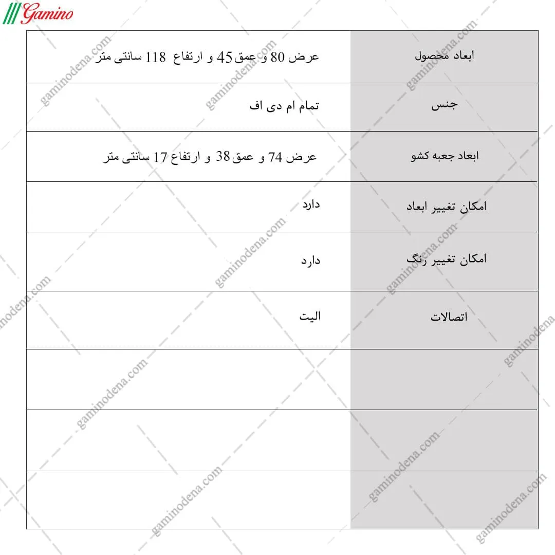 | ابعاد کلی محصول | عرض 80 و عمق 45 و ارتفاع 118 سانتی متر |