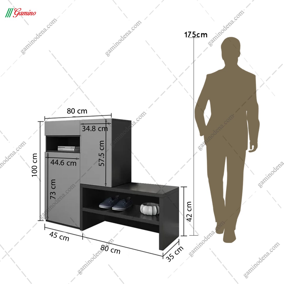 داشتن یک جاکفشی کم جا در عین حال که فضای زیادی از خانه شما را اشغال نمی کند، می تواند کفش های شما را در خود جای دهد. جاکفشی آتیه دارای یک کشو نیز می باشد. داشتن یک جاکفشی با فضای نشمین به شما این امکان را میدهد تا در زمان پوشیدن یا در آوردن کفش های بند دار بدون هیچ کونه فشاری به کمر و زانو، عمل کنید. این جاکفشی دارای یک کشو و یک باکس نیز میباشد تا وسایل خود را در آن نظم دهید.