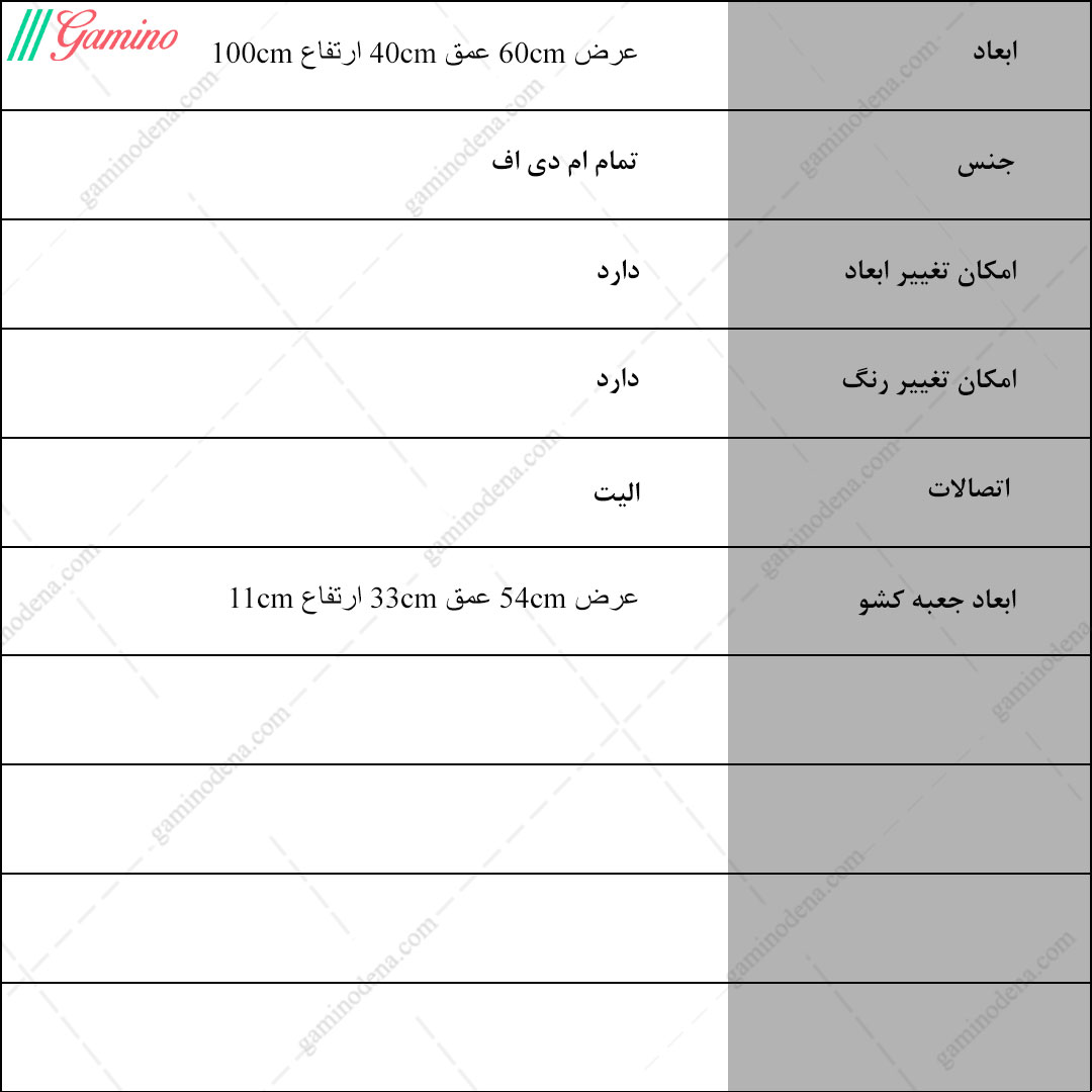 - ابعاد کلی محصول : عرض 60، عمق 40و ارتفاع 100 سانتی متر