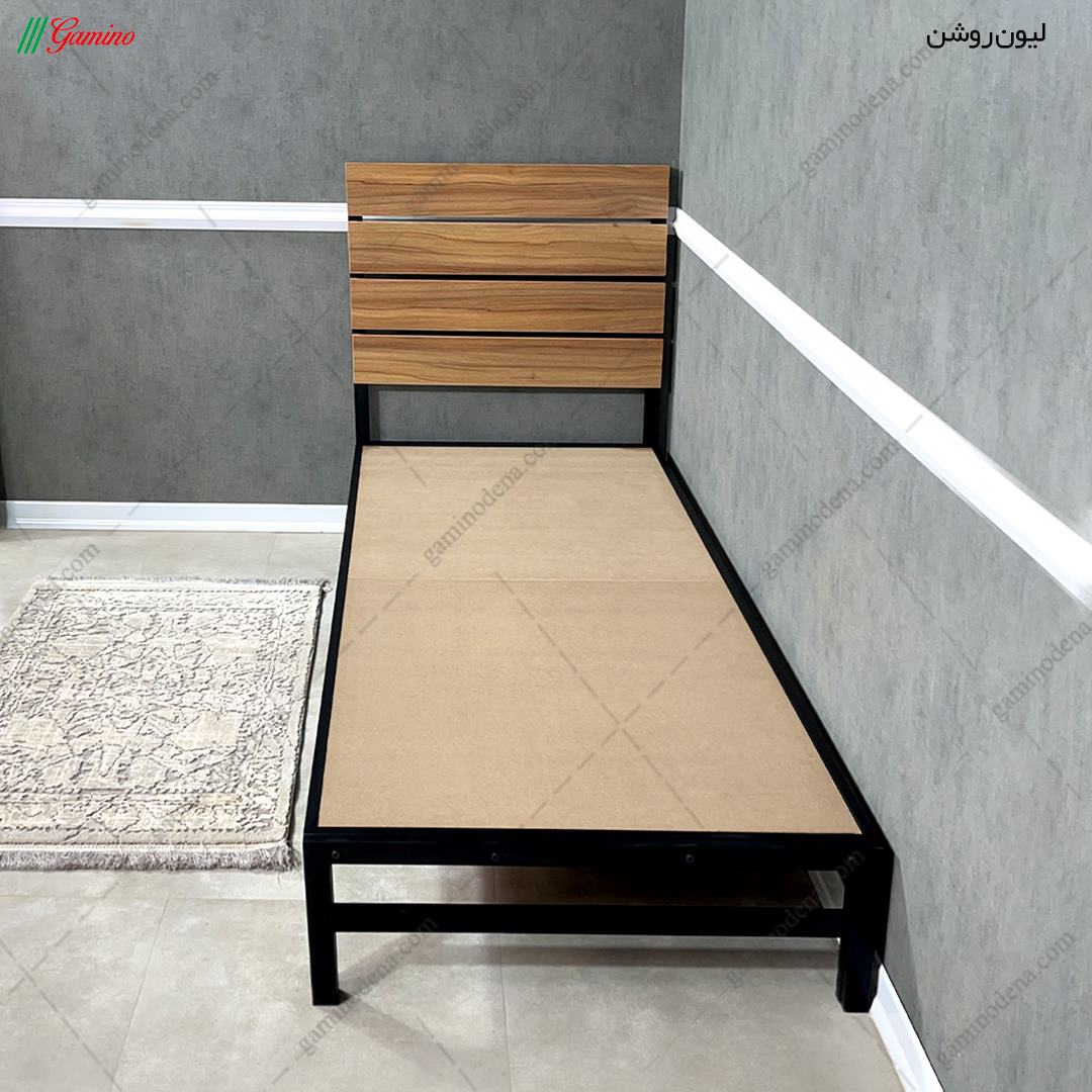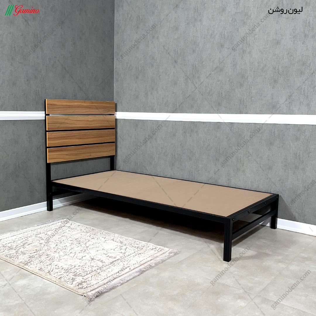 مهم: این محصول ترکیب رنگ پیشفرضی ندارد. رنگ تخت خواب این محصول (ترکیب تمام لیون روشن و فلز مشکی ) و رنگ پاتختی آن (ترکیب لیون روشن و نما ونگه) است.