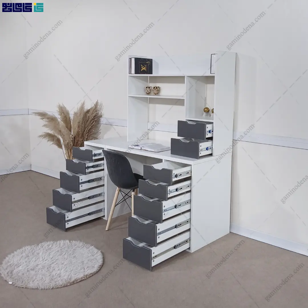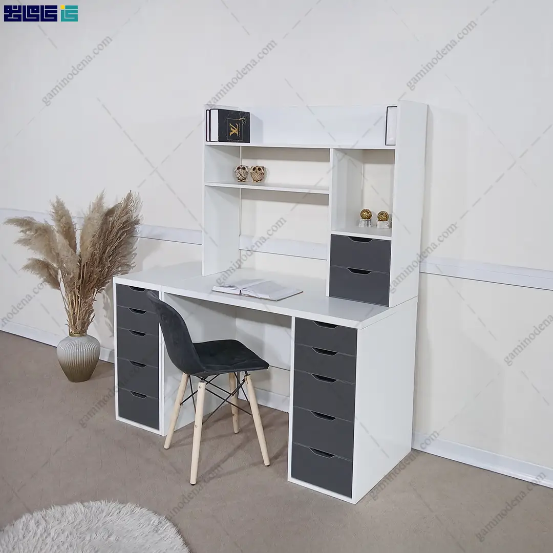 اگر شما هم به دنبال خرید یک میز تحریر کتابخانه دار مدرن کامل و کاربردی هستید، ما این میز تحریر کتابخانه دار از گامی نو را به شما پیشنهاد می کنیم. این میز تحریر جدید با داشتن چندین باکس و کشو، به خوبی می تواند فضای شما را ساماندهی کند.