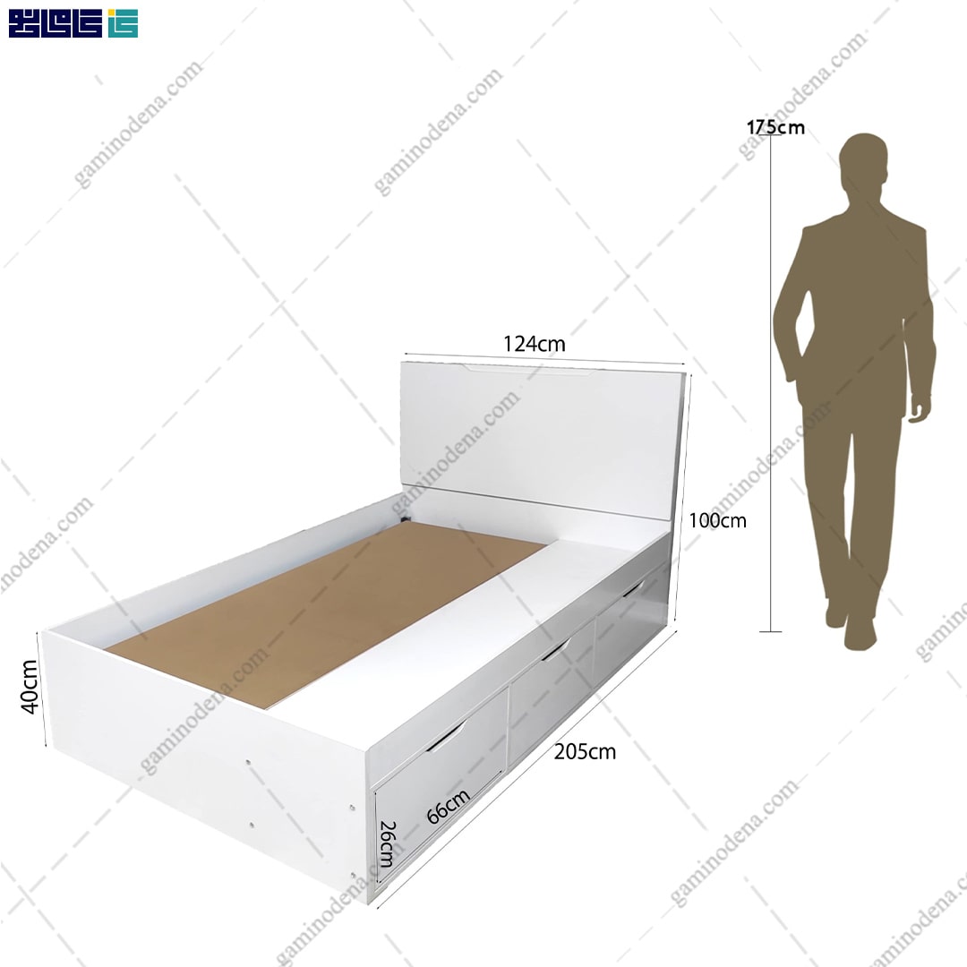 - ابعاد تخت : عرض 124 * طول 205 * ارتفاع 100 سانتی متر