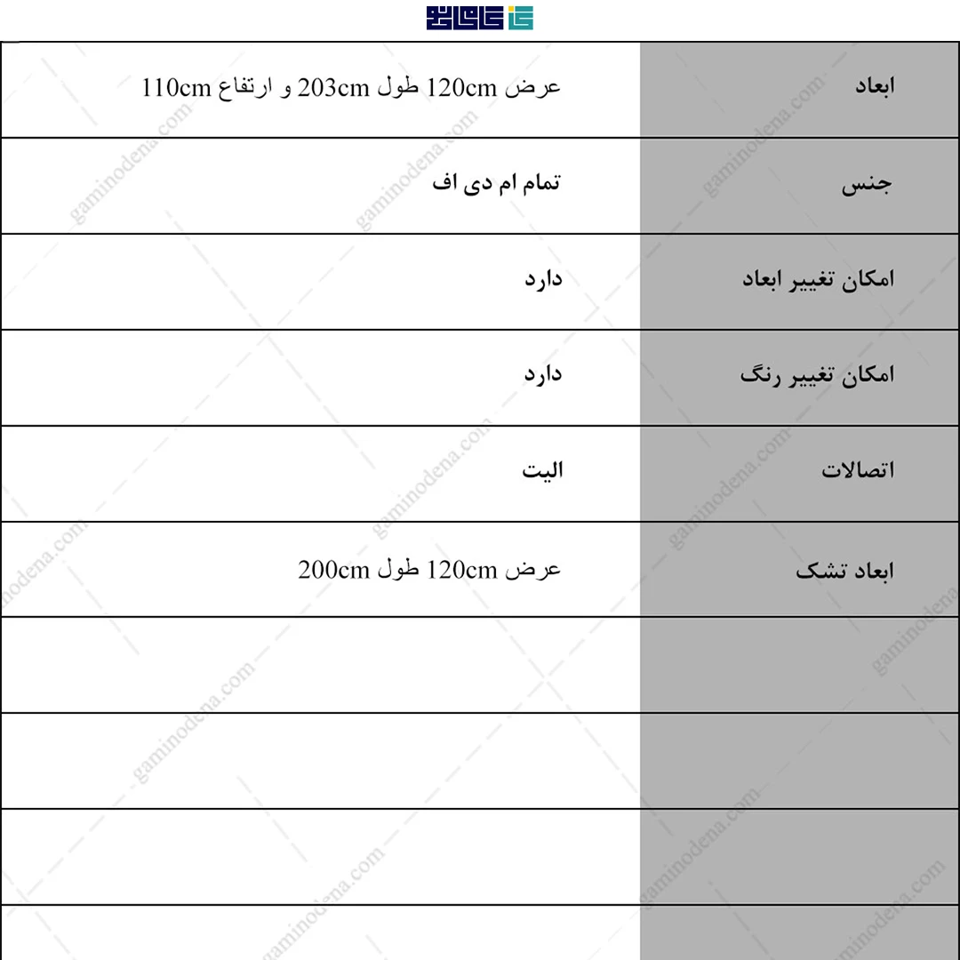 - ابعاد تخت : عرض 126 * طول 203 * ارتفاع 110 سانتی متر
