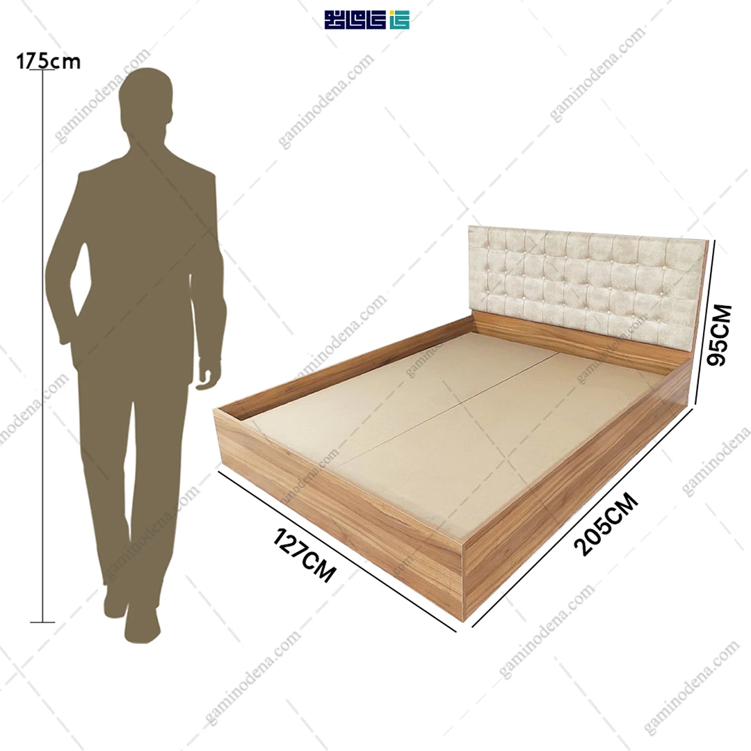 - ابعاد تخت : عرض 127 * طول 205 * ارتفاع 95 سانتی متر