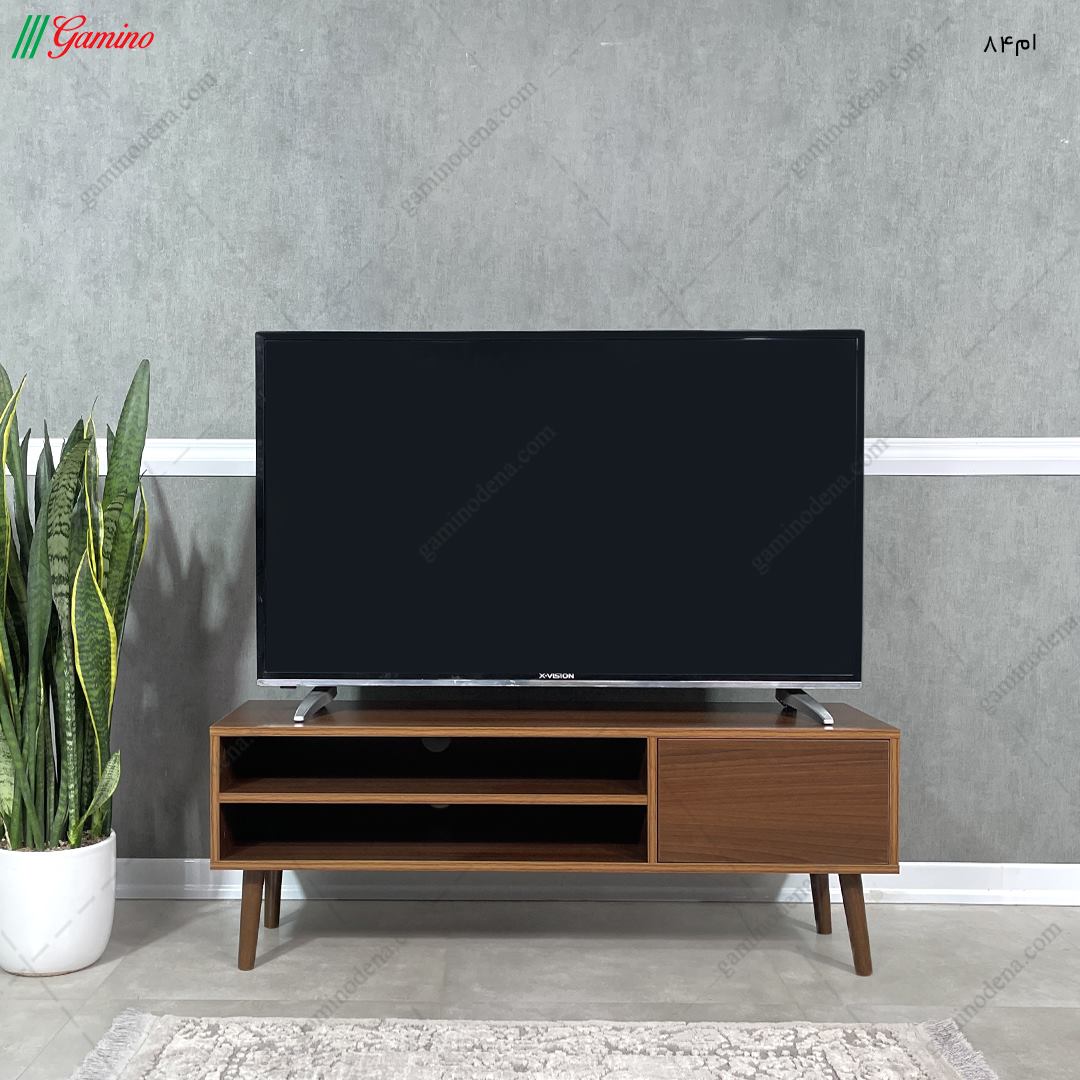 میز تلویزیون مینیمال ام دی اف پایه چوبی مدل الیسا