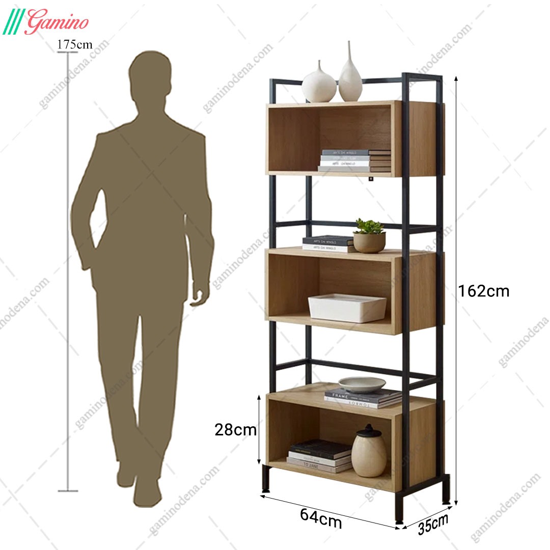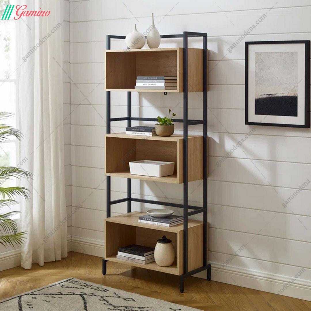 کتابخانه خانگی مدرن چوب و فلز مدل k101