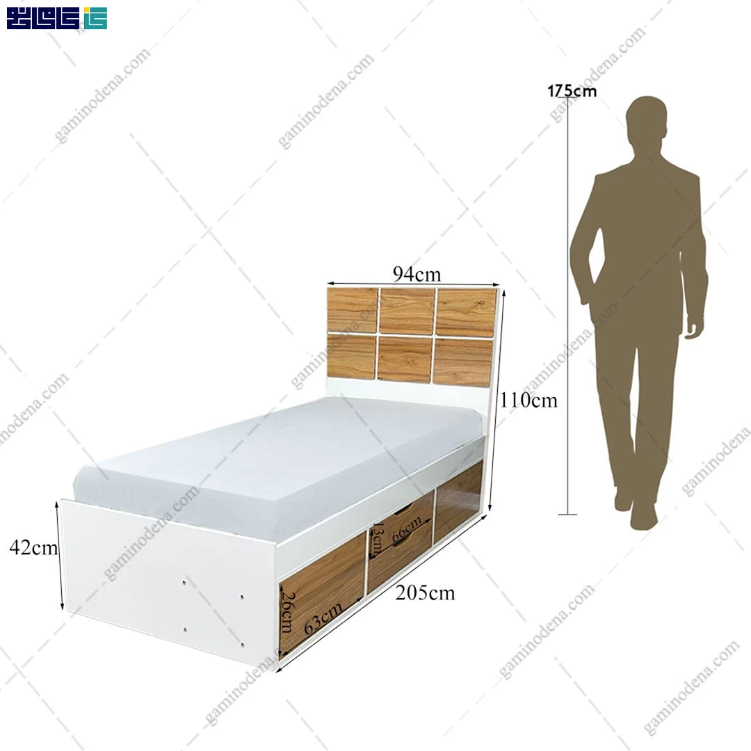 - ابعاد تخت : عرض 124 طول 205 و ارتفاع 110 سانتی متر