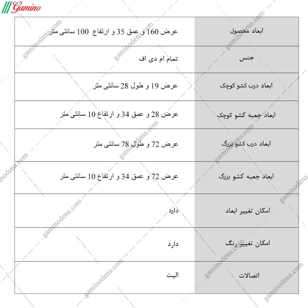 - ابعاد جعبه کشو بزرگ: عرض 72 و عمق 34 و ارتفاع 10 سانتی متر
