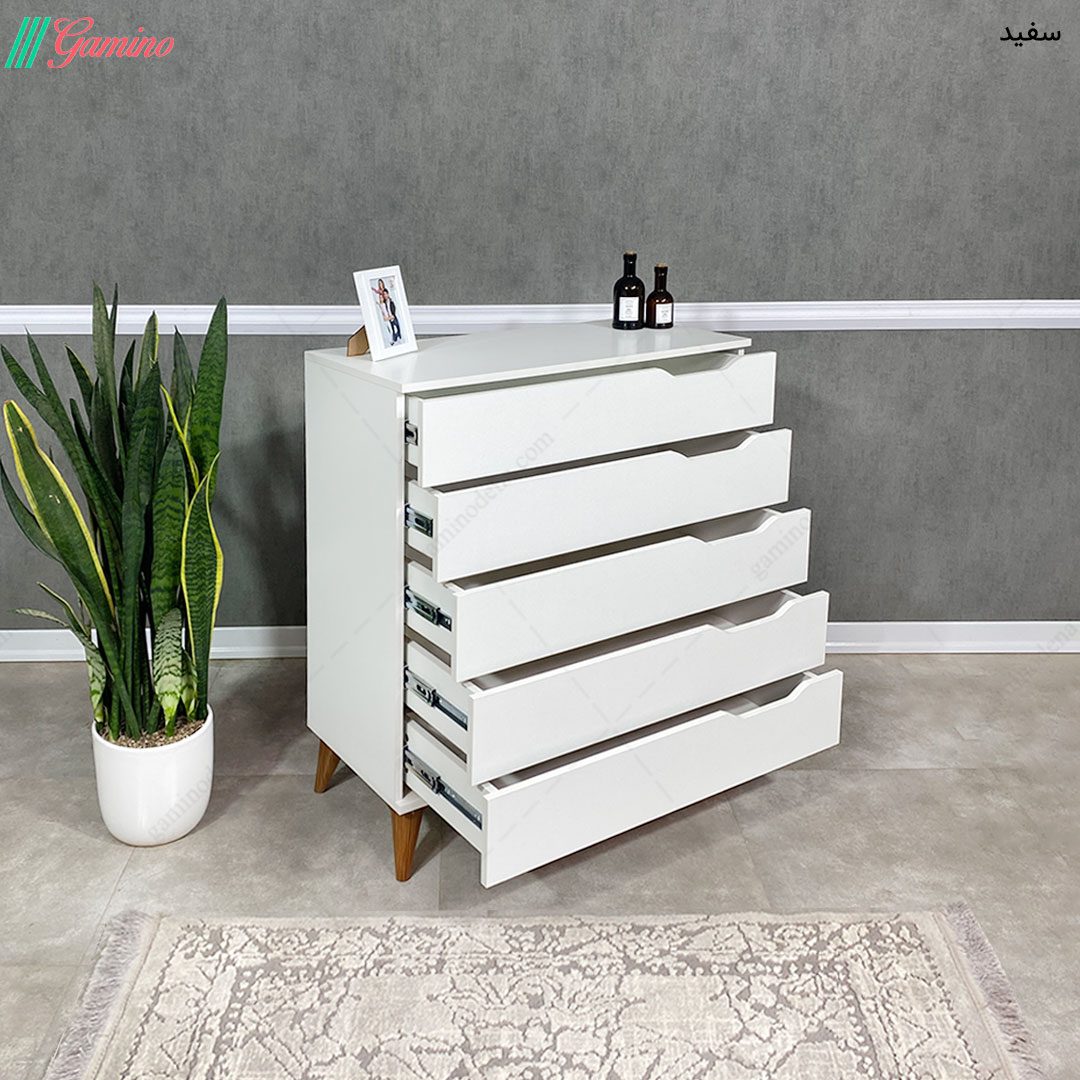 یکی از دراورهای بسیار زیبای مجموعه گامی نو، این محصول دراور 5 کشو فرنیا است که با دستگیره های زیبیا و نوع طراحی منحصر به فردش همه را مجذوب خود نموده است. در ادامه شما را با ویژگی های این محصول به طور کامل آشنا خواهیم کرد.