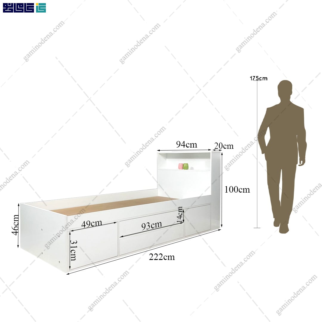 - ابعاد تخت : عرض 94 * طول 222* ارتفاع 100 سانتی متر