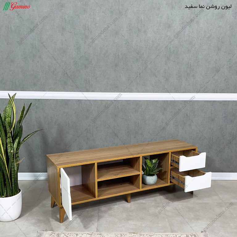 مشخصات میز تلویزیون ساده و شیک مینیمال پایه دار مدل کوروش