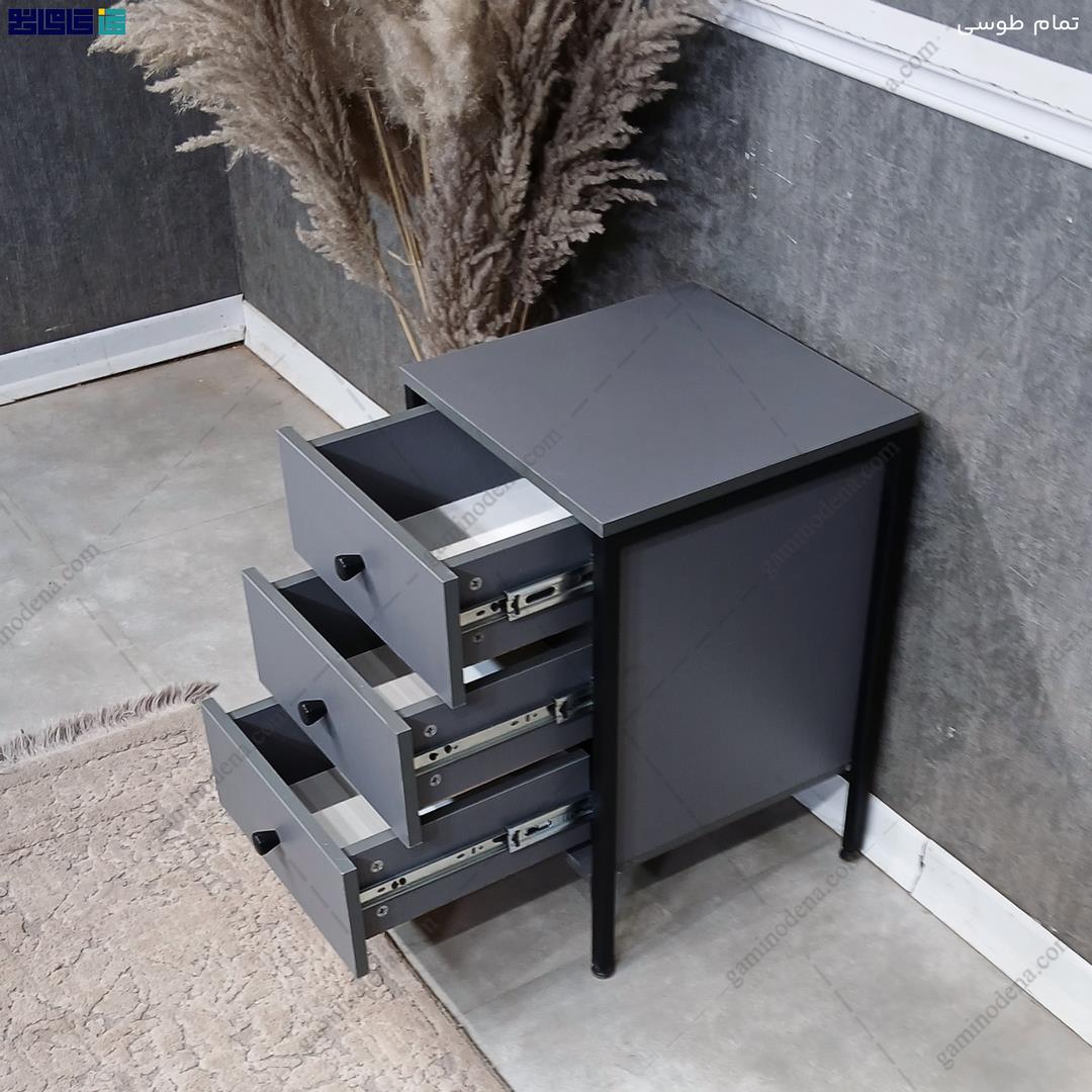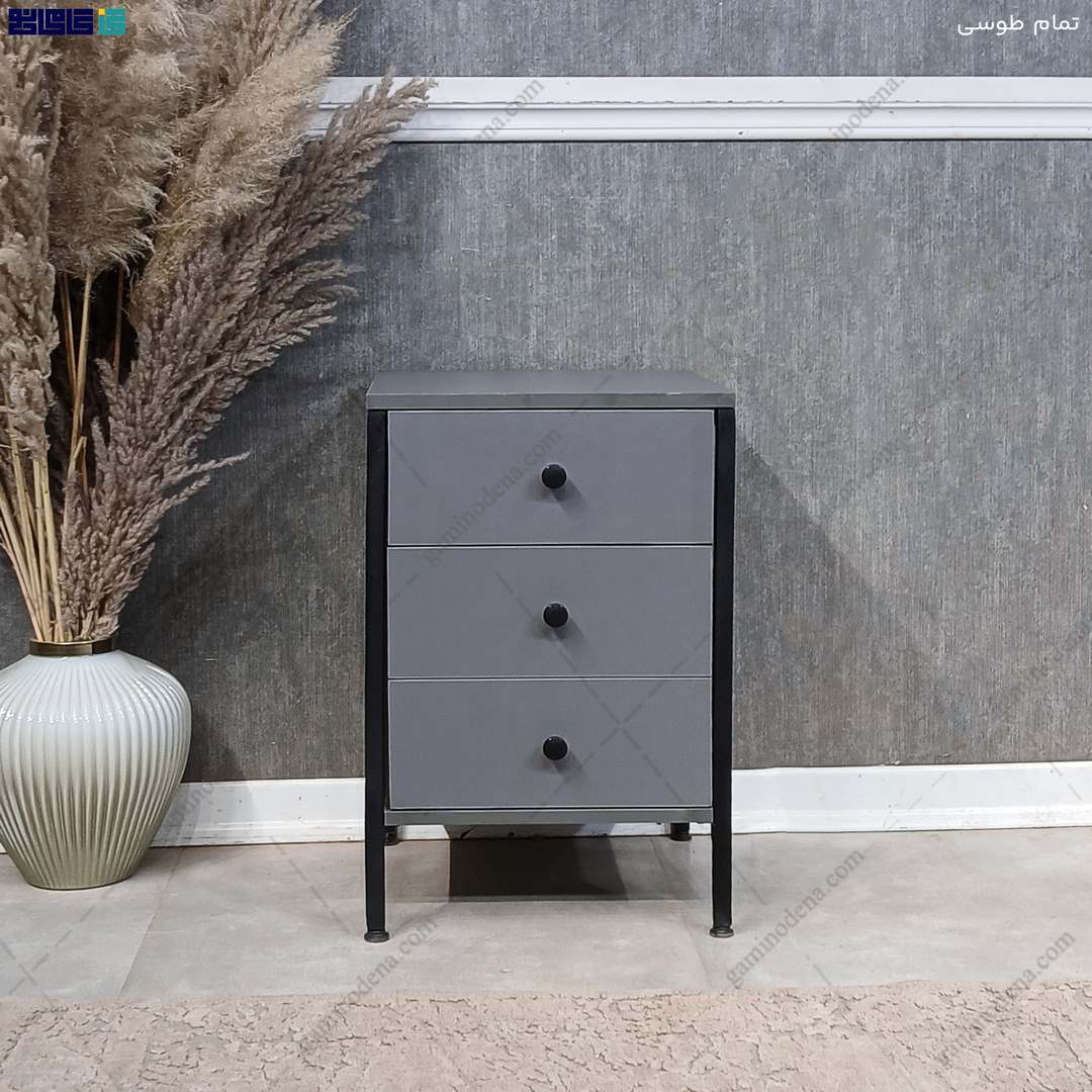 میز پاتختی مدرن و فلزی سه کشو مدل جواهر