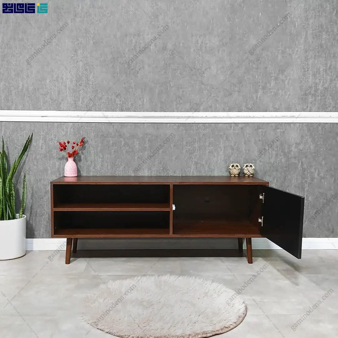 میز تلویزیون ساده و شیک مینیمال پایه چوبی مدل کارولین