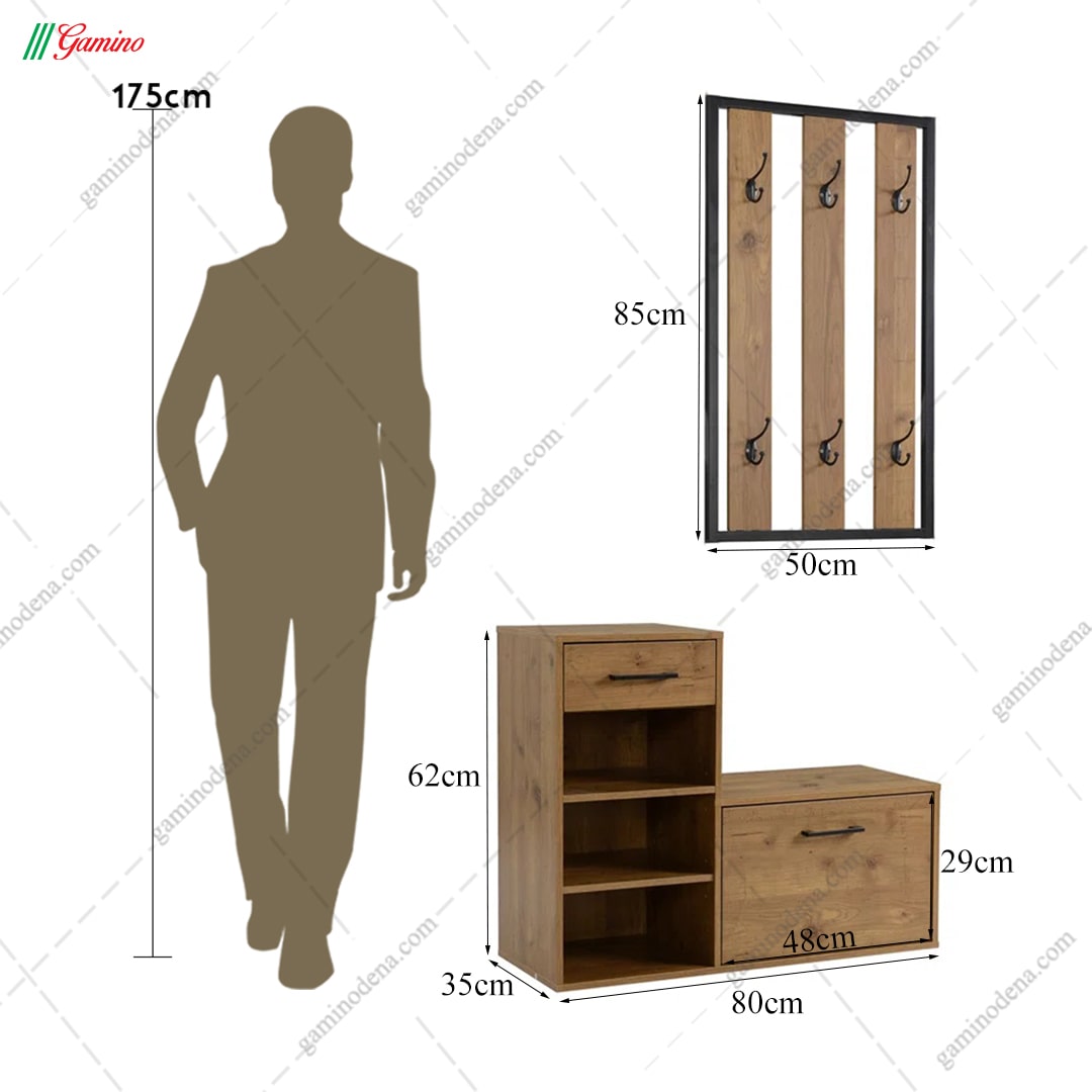 - ابعاد جاکفشی : عرض 80، عمق 35 و ارتفاع 62 سانتی متر