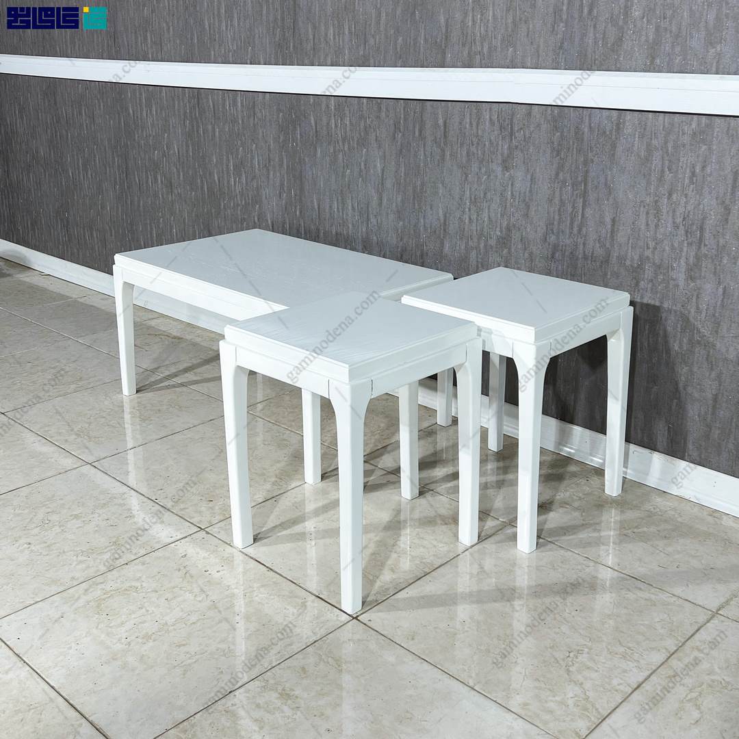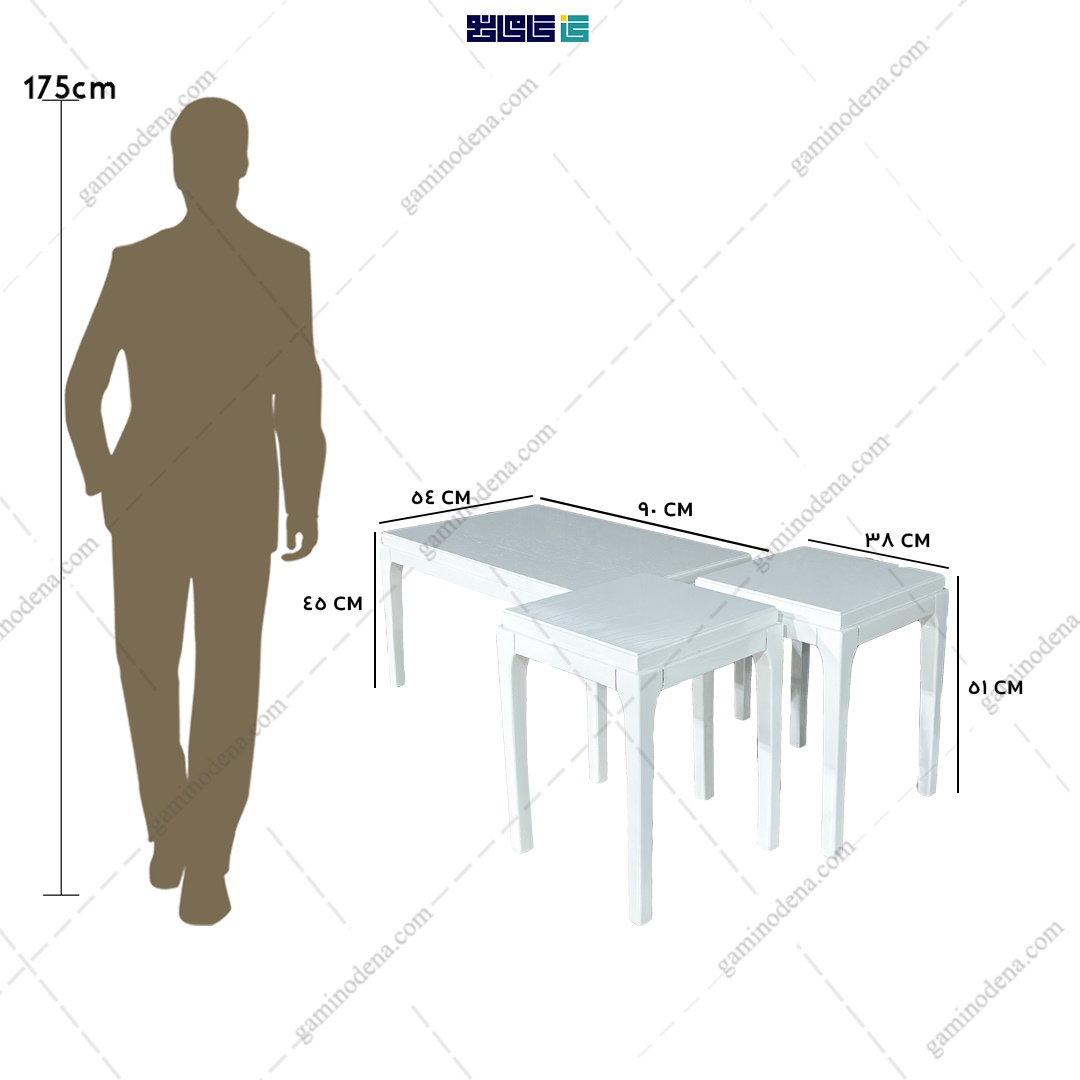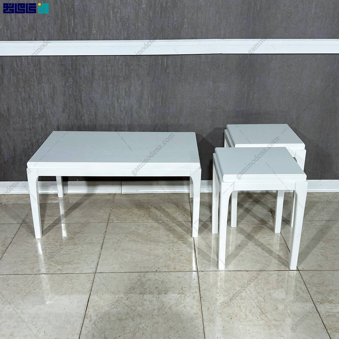 - شامل یک میز جلو مبلی زیبا و شیک و دارای دو میز عسلی در کنار جلو مبلی