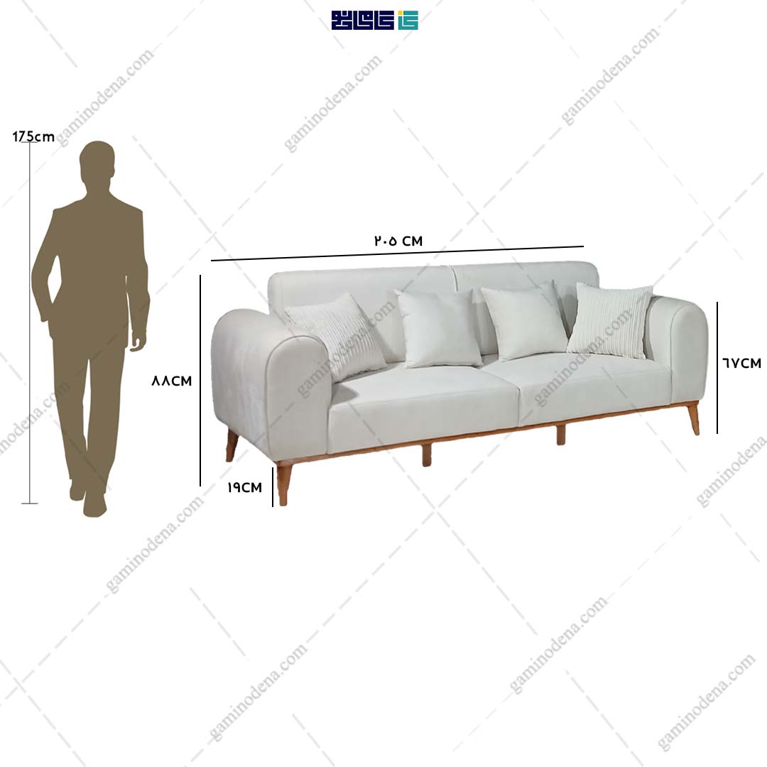 - ارتفاع نشیمن : 45، داخل مبل 157، عمق هر نشیمن 57 و ارتفاع تا روی دسته 67 سانتی متر می باشد.