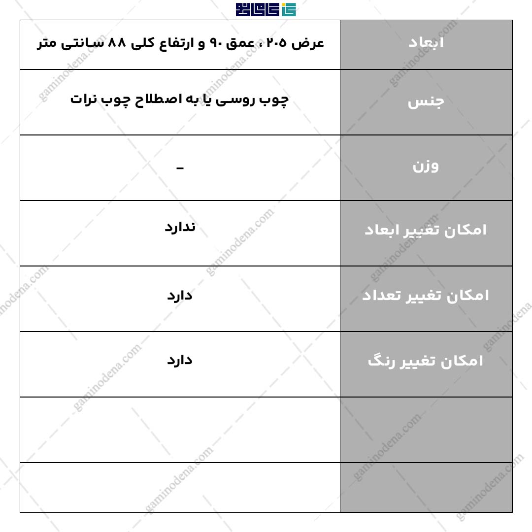 - عرض 205 ، عمق 90 و ارتفاع کلی 88 سانتی متر
