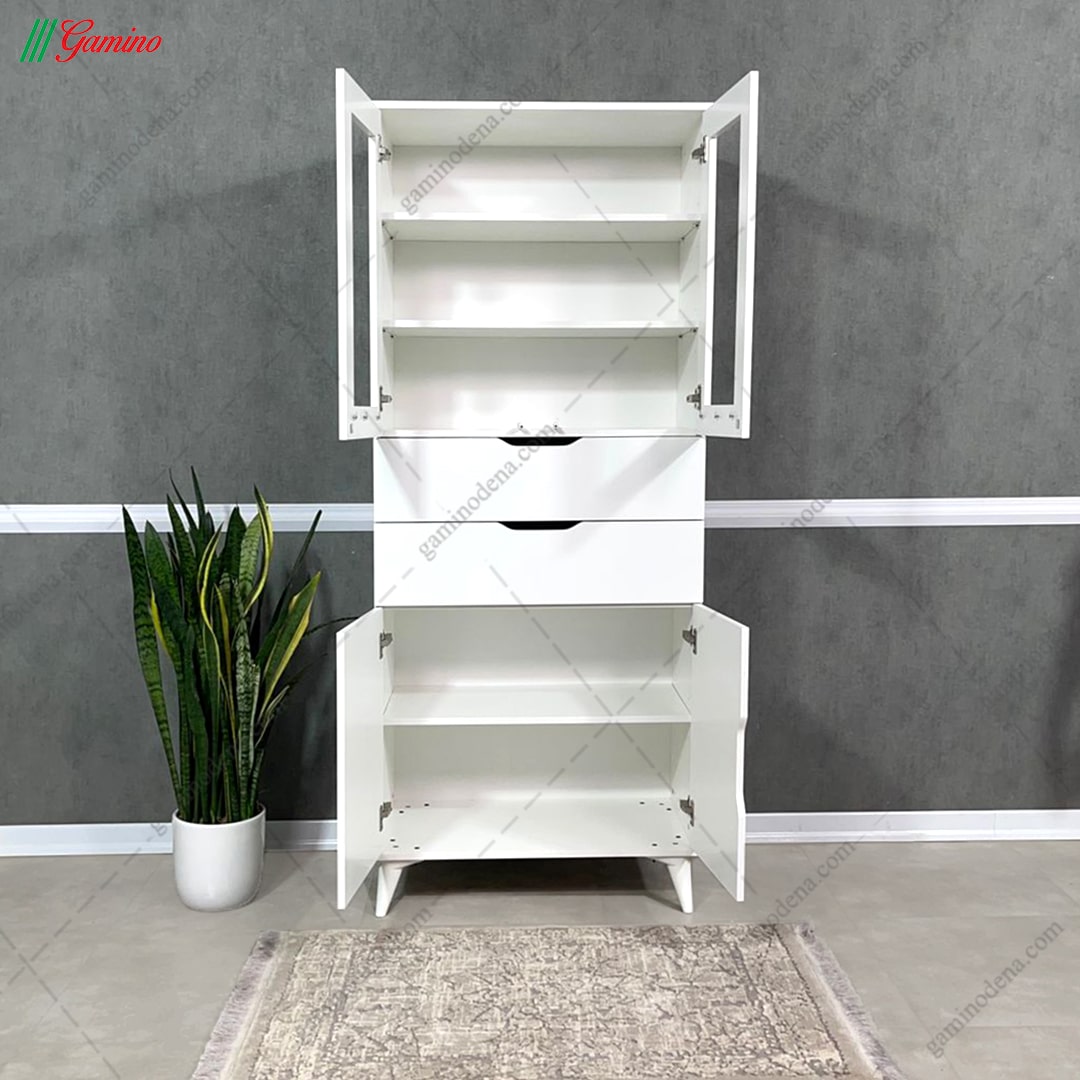 کتابخانه مانیا یک کتابخانه بسیار جادار و کاربردی است که دارای یک بخش با درب شیشه ای، دو کشو و یک کمد در بخش انتهایی با دو درب طراحی گشته است. در ادامه شما را با ویژگی های این محصول آشنا خواهیم کرد