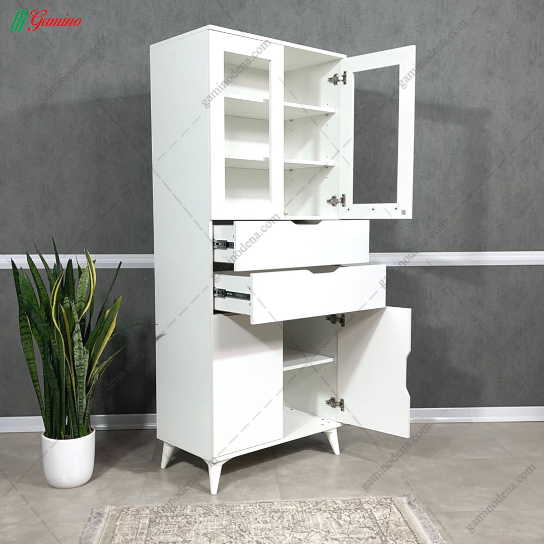 - در بخش بالایی کتابخانه یک قسمت درب دار که در بخش وسط آن شیشه نصب گردیده است.