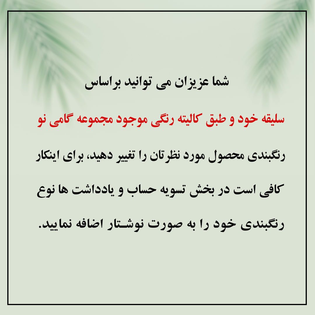 - امکان تغییر رنگ بندی محصول طبق (کالیته رنگی ) و سلیقه شما عزیزان