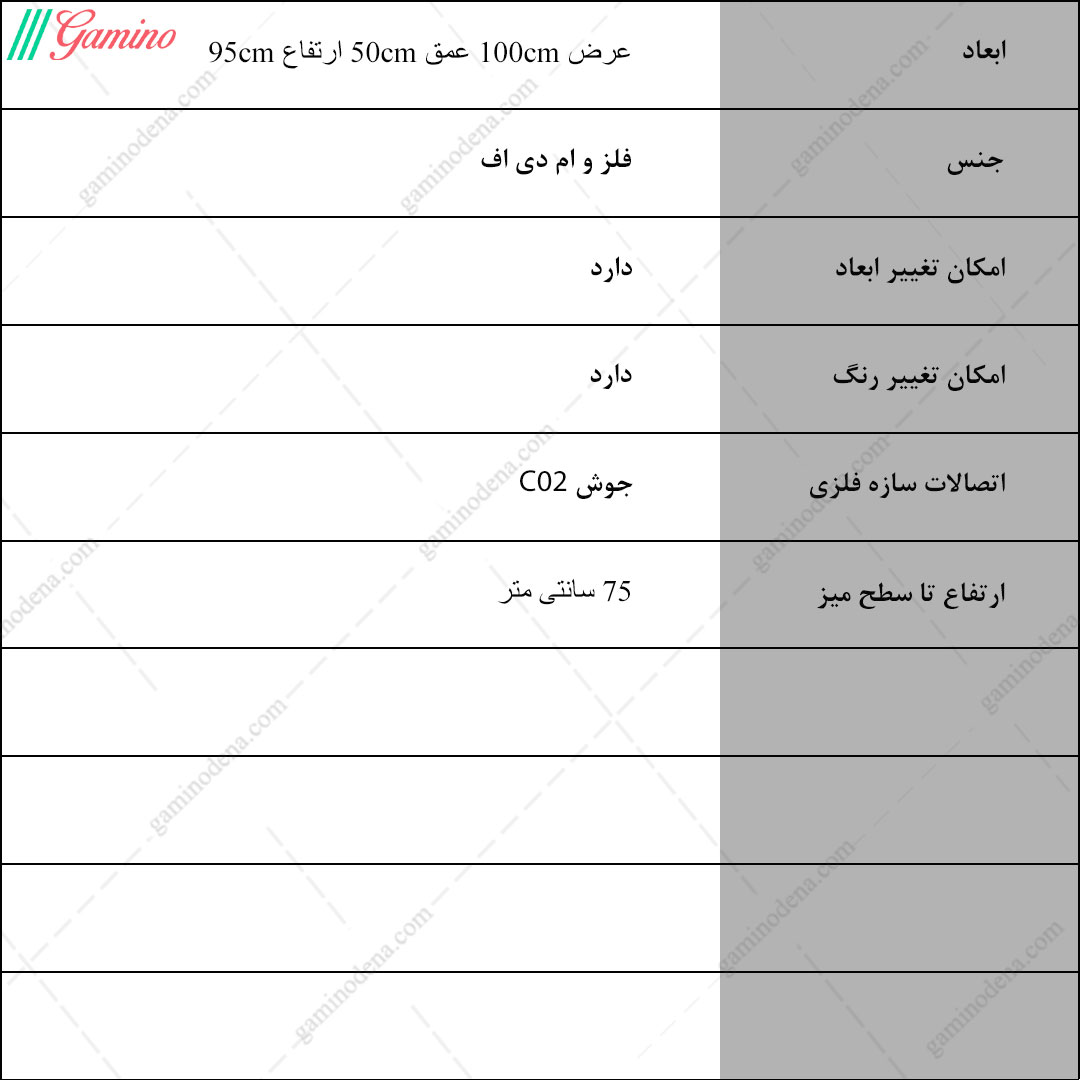 - دارای یک باکس مستطیلی زیر میز با کفی فنس