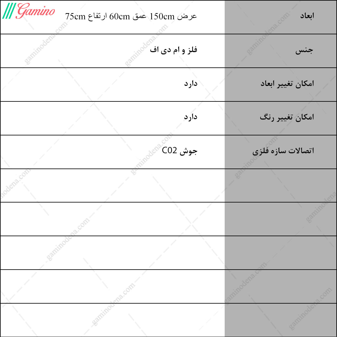 - ابعاد کلی محصول : عرض 150 ، عمق 60 و ارتفاع 75 سانتی متر