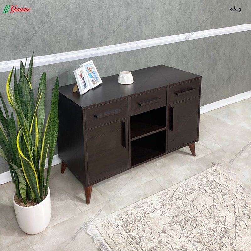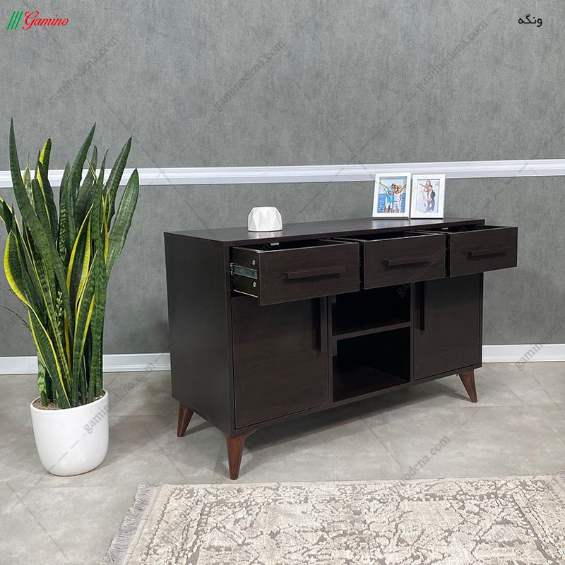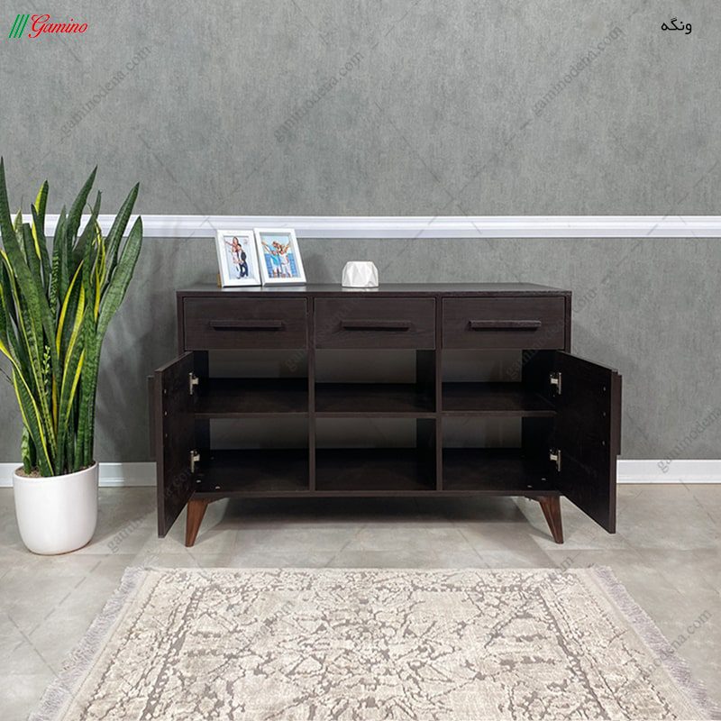 اگر به دنبال یک میز کنسول خاص هستید که به فضای خانه شما جلوه دهد، پیشنهاد ما به شما میز کنسول نورا می باشد که دارای کمد، کشو و طبقاتی برای قرار دادن انواع وسیله می باشد.
