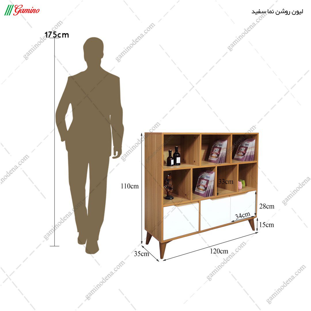 | ابعاد کتابخانه | عرض 120 ، عمق 35 و ارتفاع 110 سانتی متر |