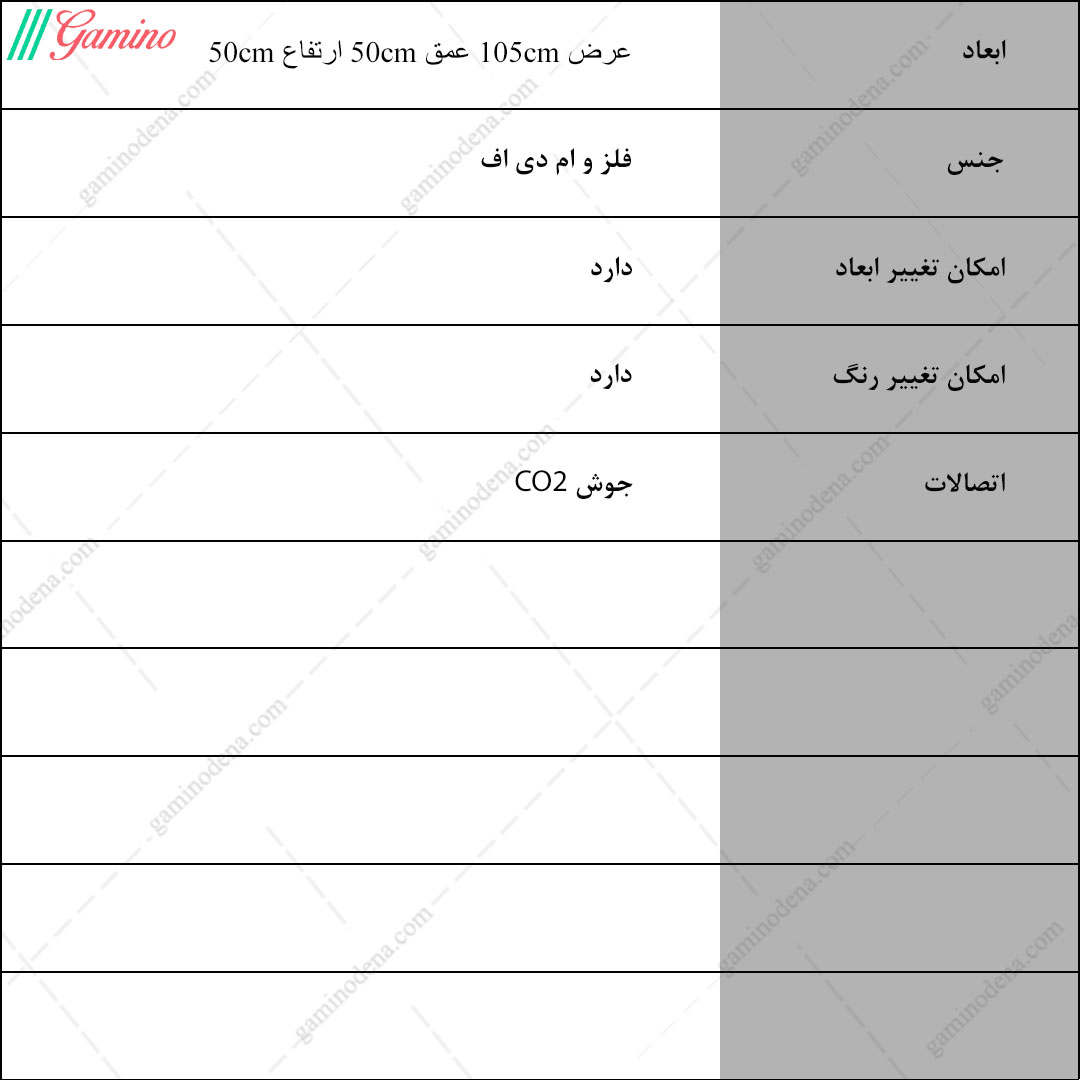 - ابعاد محصول : عرض 105 و عمق 50 و ارتفاع 50 سانتی متر