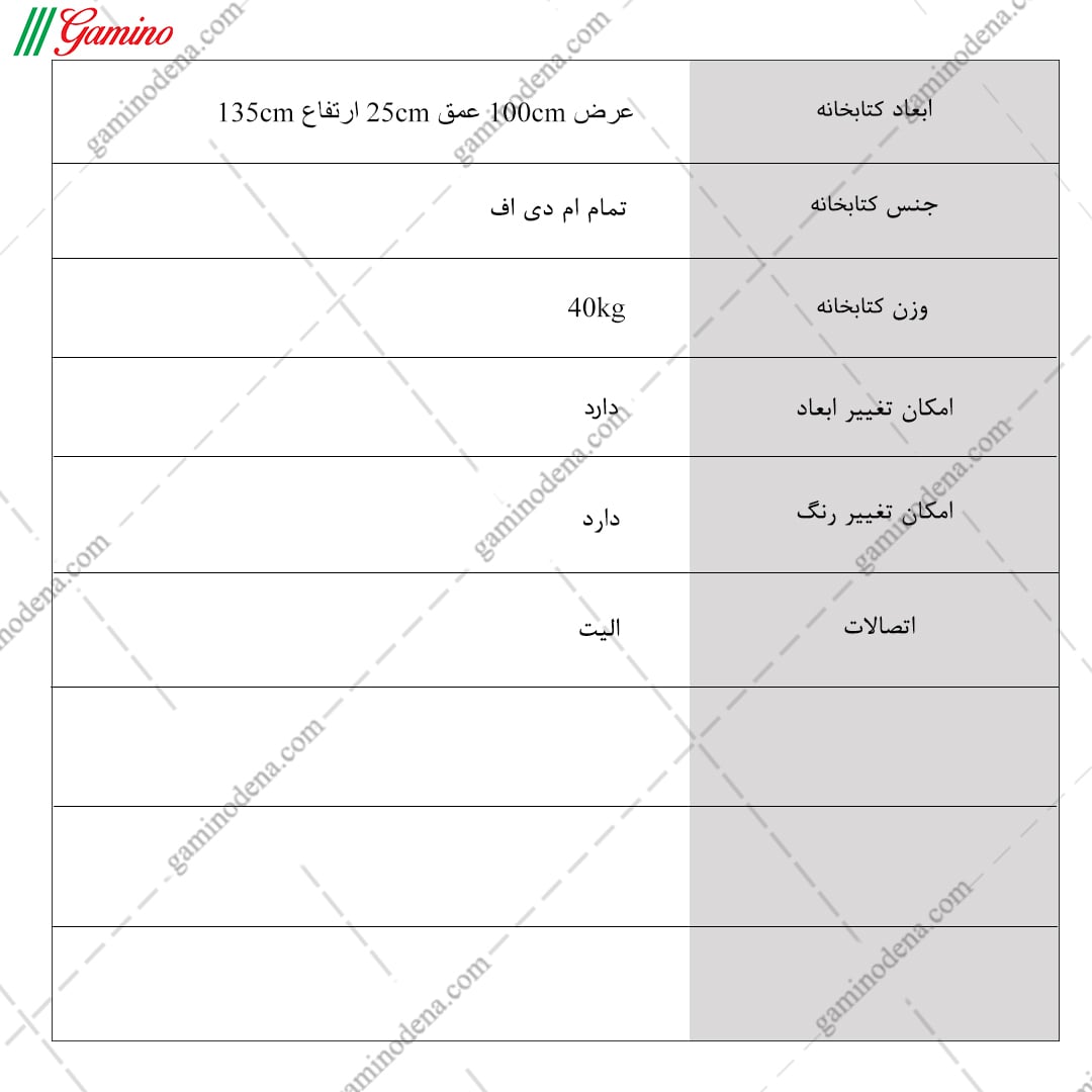 پاسخ: به دلیل اینکه تمامی محصولات، تولید خود گامی نو دنا میباشد برای کتابخانه نیز امکان انتخاب رنگ و ابعاد محصول توسط مشتری وجود دارد و میتوانید به صورت حضوری و یا غیرحضوری از طریق تماس با واحد فروش از این موضوع اطمینان حاصل کنید.