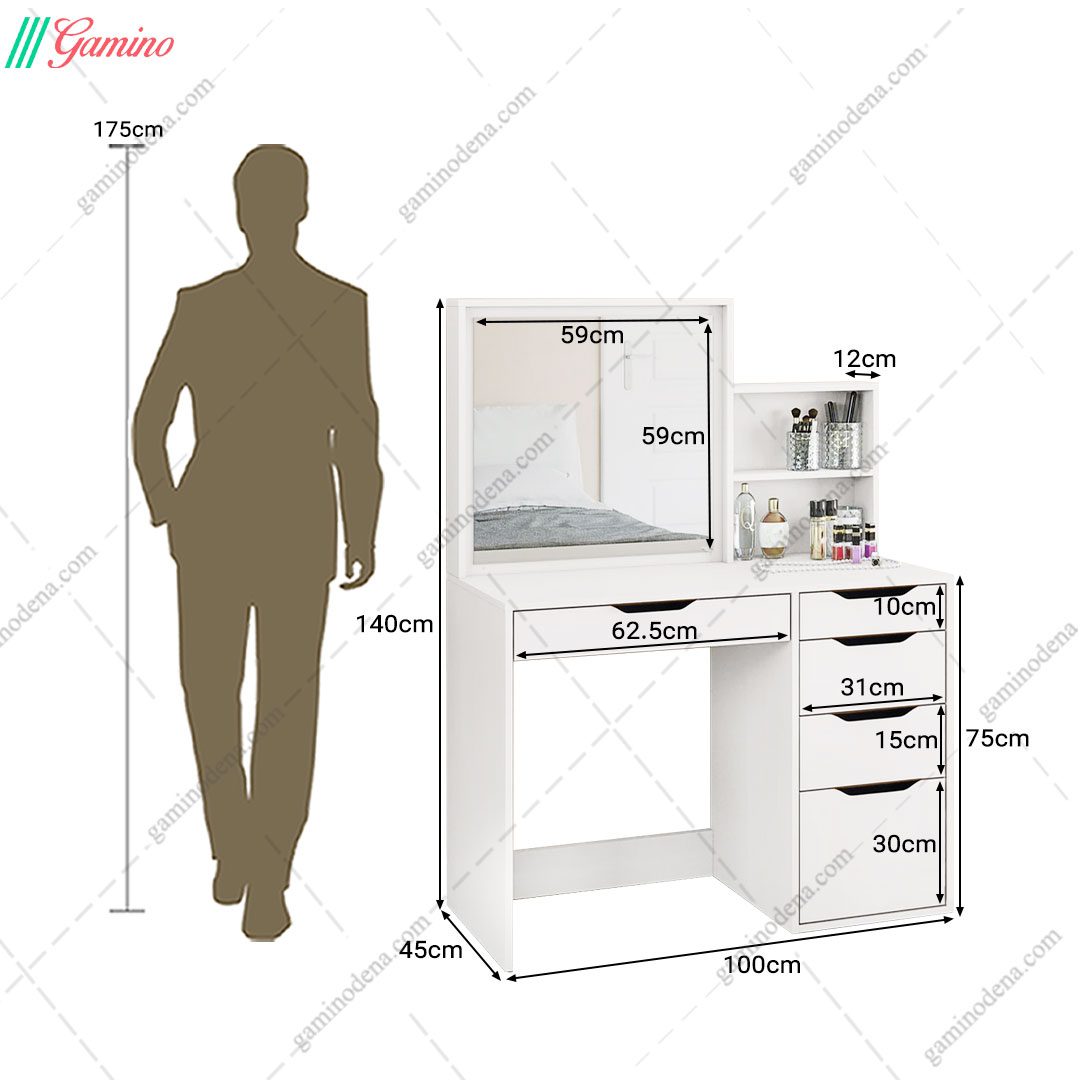 | قفسه های جانبی | دارای قفسه در کنار آینه برای وسایل آرایشی |