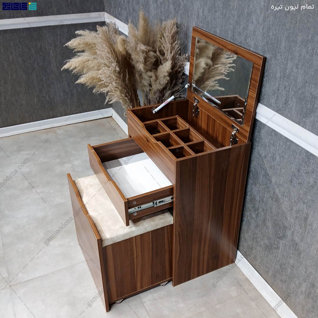 شما عزیزان می توانید این میز آرایش جدید و مدرن را با دیگر لوزم منزل خود از جمله؛ میز تحریر چوبی، باکس دیواری و یا کمد خود از لحاظ رنگ بندی و رنگ چوب ست نمائید و از فضای بوجود آمده نهایت لذت را ببرید.