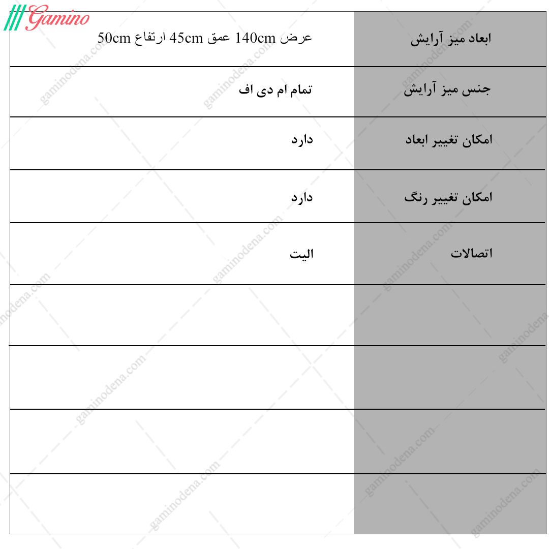 - ابعاد کلی محصول : عرض 140 ، عمق 45 و ارتفاع 50 سانتی متر