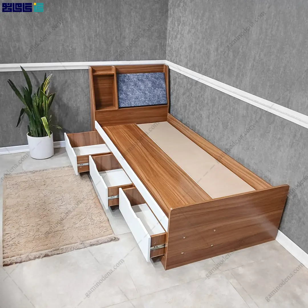 داشتن یک تخت خواب یک نفره همه چی تمام که بشود از فضای زیر آن نیز استفاده بهینه ای برد، میتواند در نظم دادن به اتاق شما بسیار کمک کننده باشد. تخت خواب زوشا با برخورداری از شلف و کشو از پس این وظیفه به خوبی بر آمده است.